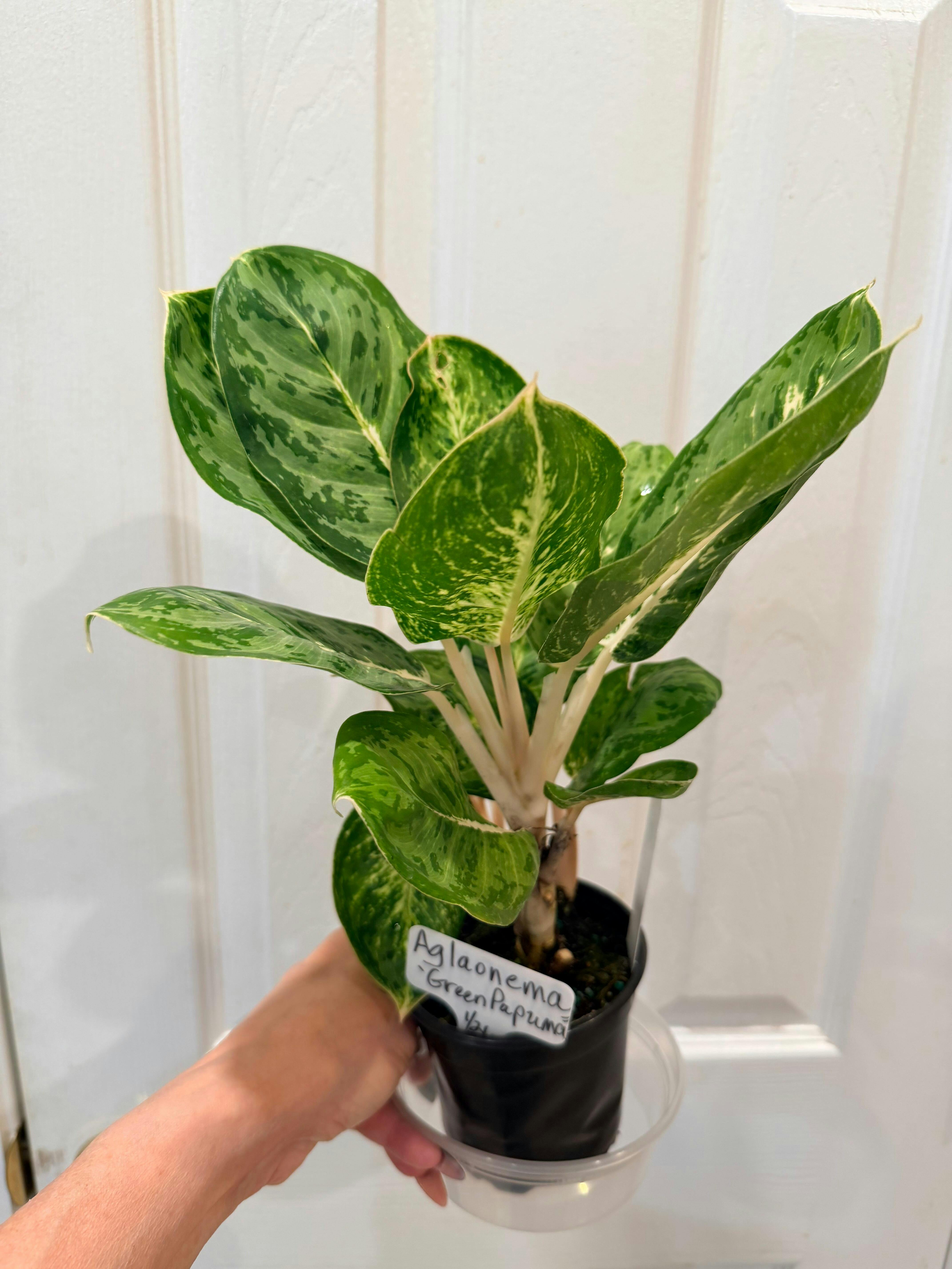 Aglaonema 'Green Papuma' prefers a well draining soil that can retain a little moisture, but not stay too wet. Allow your plant to dry out about halfway between watering, taking care to not allow it to sit in excess water. Provide your Aglaonema plant with low to bright indirect light.