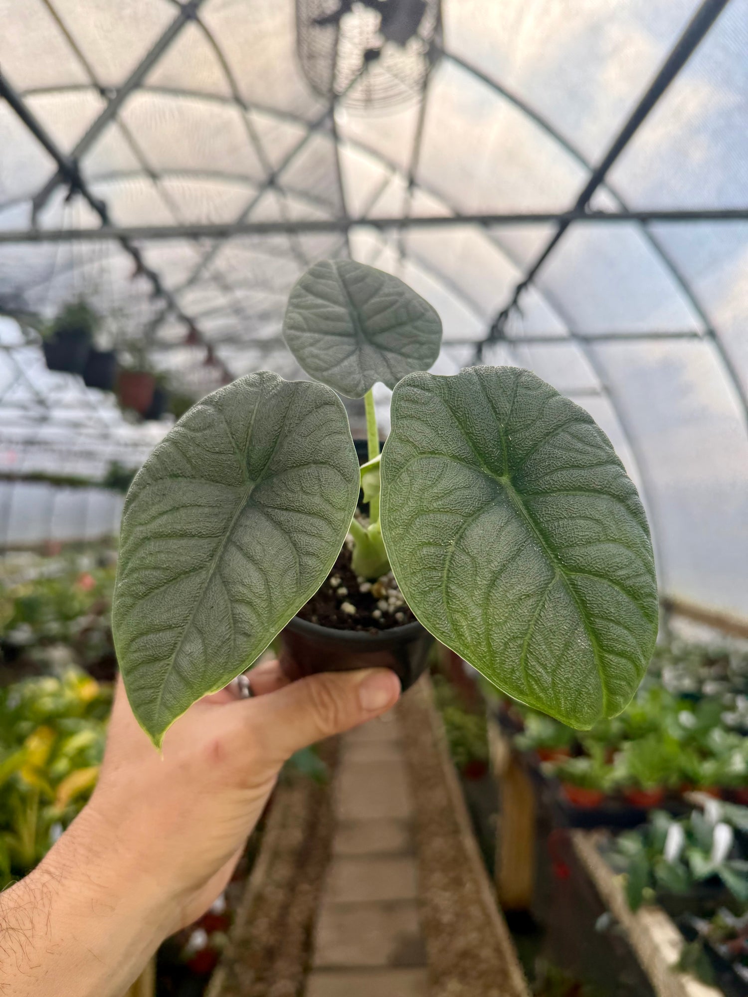 Alocasia melo is a truly unique type of elephant ear that has extremely corrugated green and silver leaves. Their leaf texture is out of this world!
