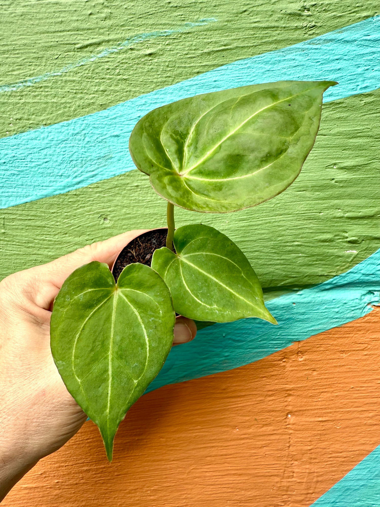 Anthurium 'King of Spades' is a popular plant, mostly sought after for its unique foliage. It has very distinct white veins with heart shaped leaves that tend to be more round than other cultivars.