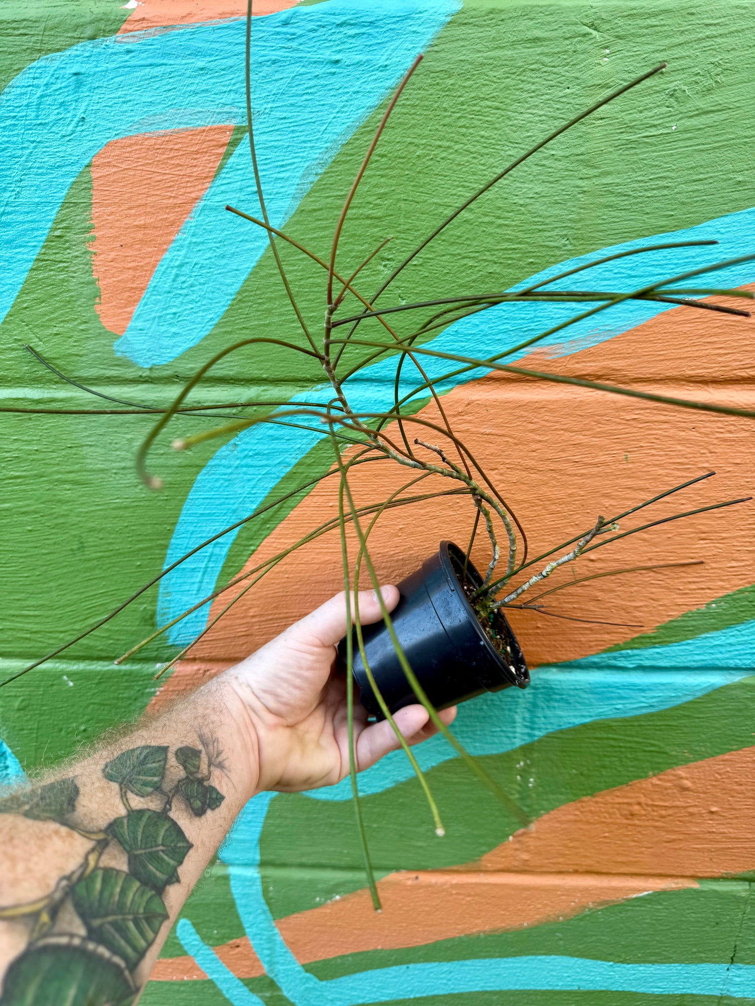 Hoya spartioides is an incredibly unique flowering indoor plant that has no leaves. This plant is made up entirely of peduncles, from which blooms emerge!
