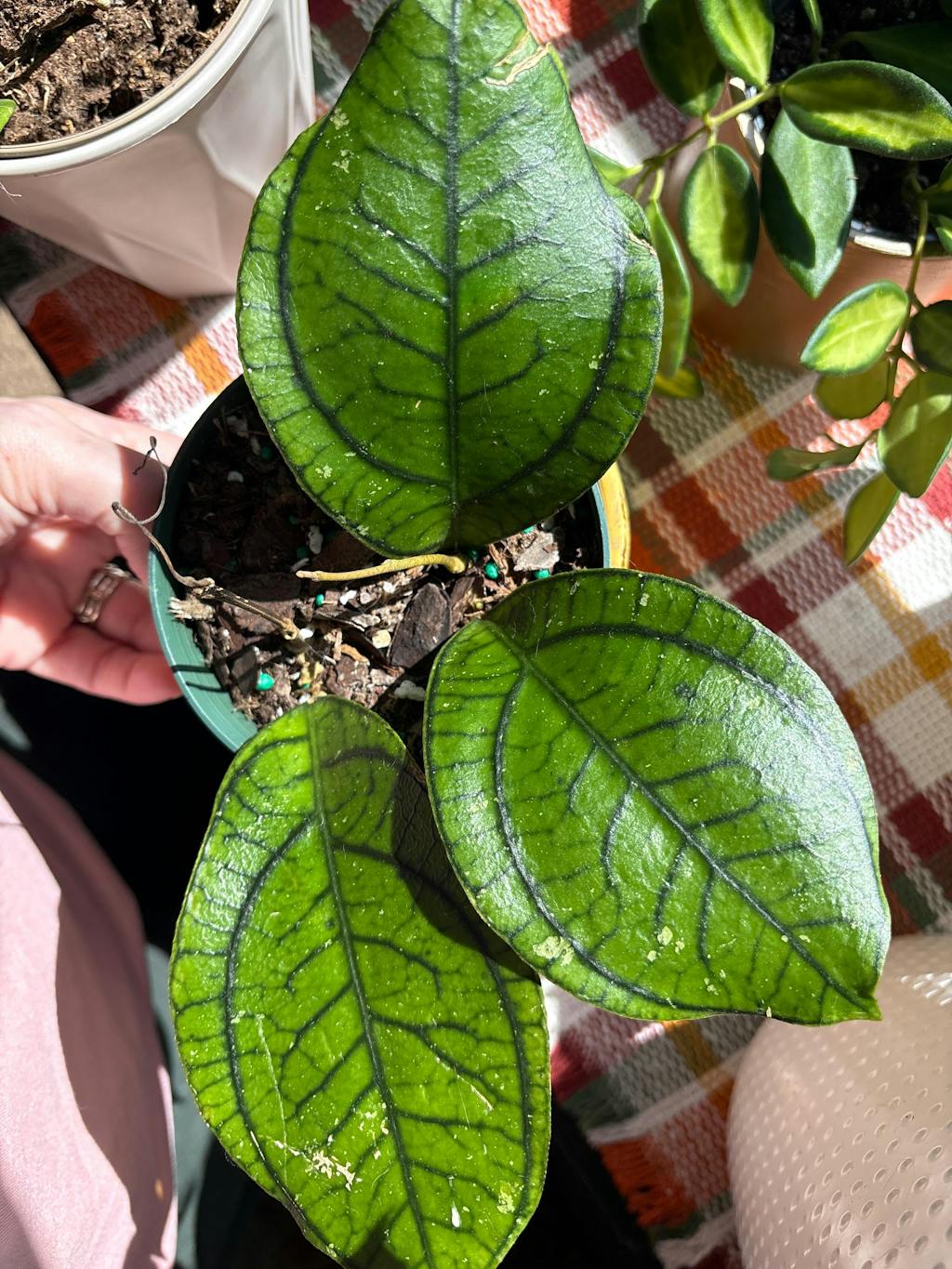 I’m not a Hoya girlie but this one caught my eye and I just needed to have her! She arrived with 3 good sized leaves and 2 active growth points (though my cat at 1 haha!). She has been pretty active since she got here.