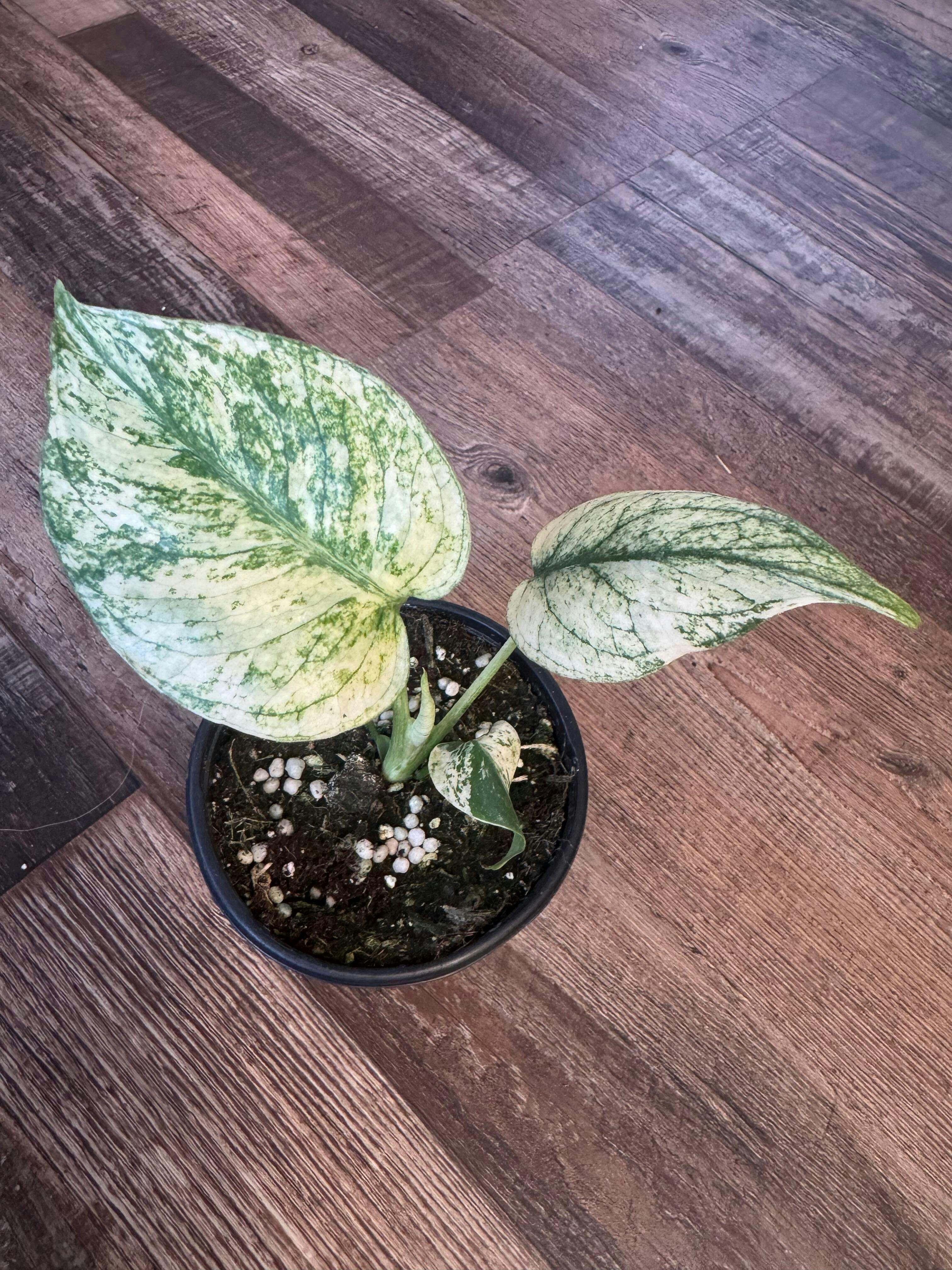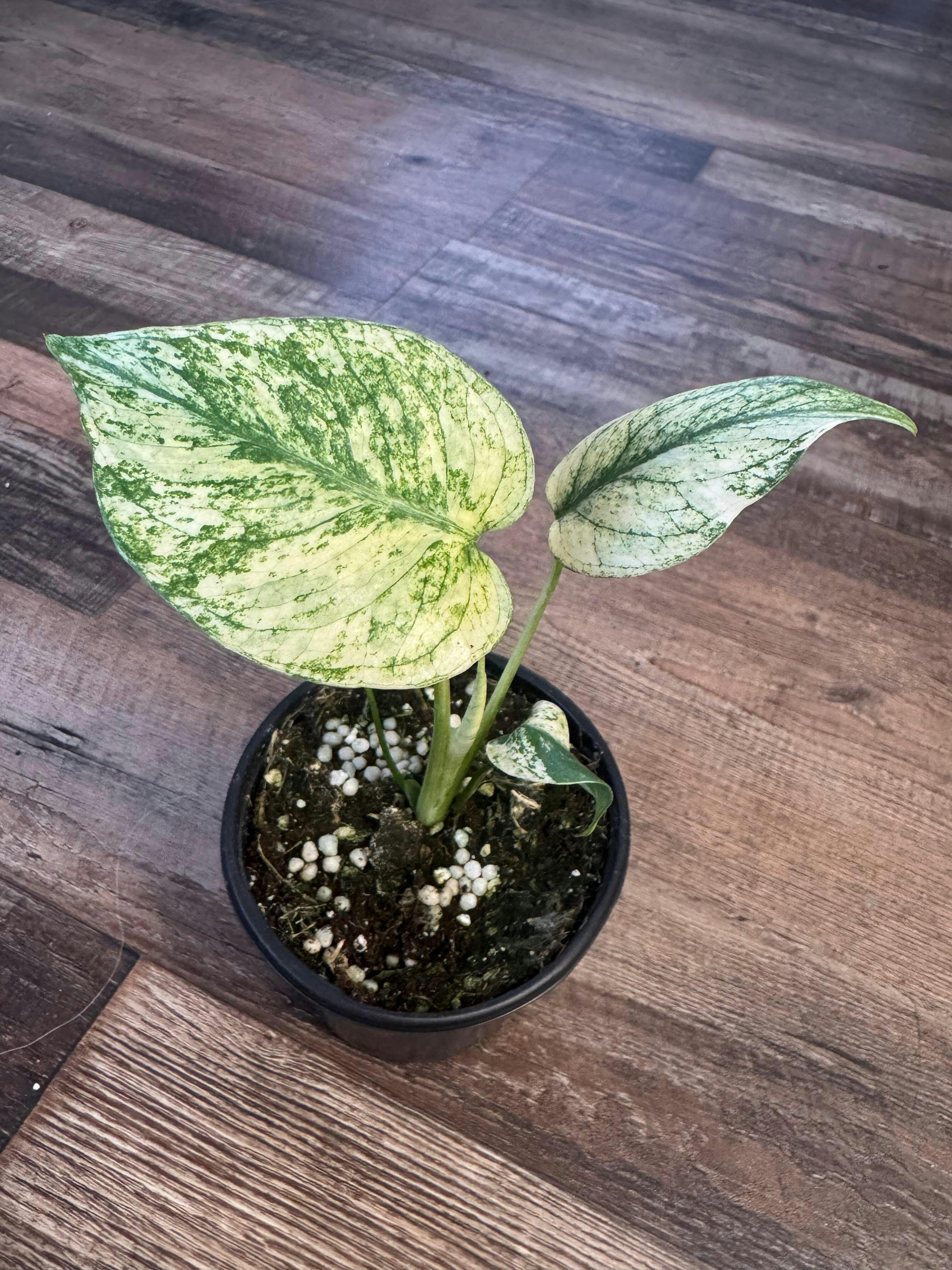 Monstera Mint is a highly sought after variegated form of Monstera deliciosa. This particular cultivar grows highly speckled white leaves. A slow grower, but very easy to care for.