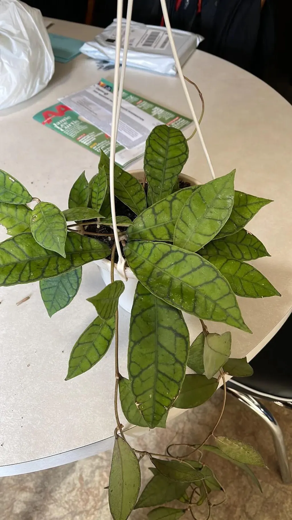 Hoyas have a large range of foliage shapes and textures. They can be found with elongated, deeply veined leaves to thin, narrow leaves and everything in between.