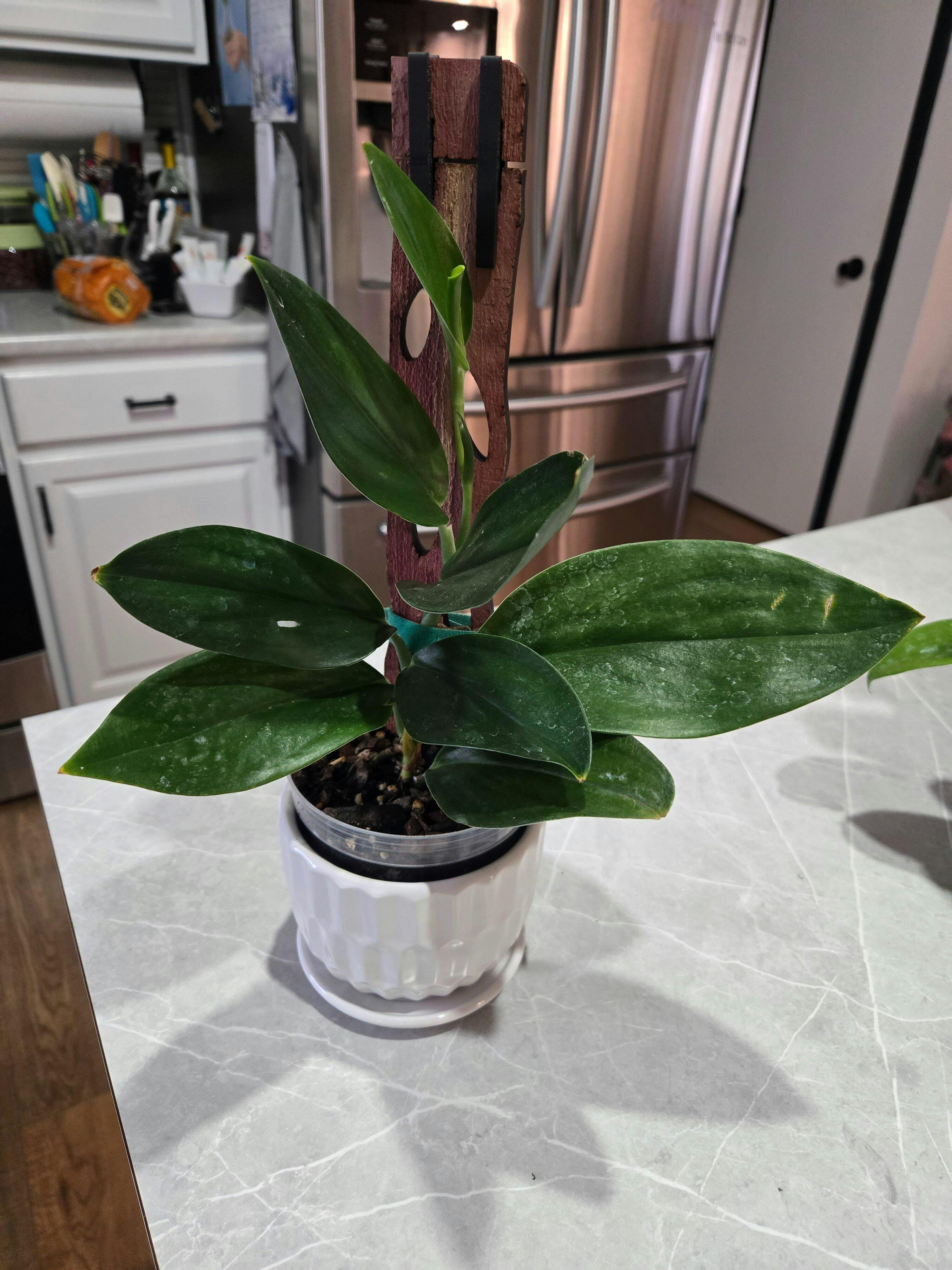 Scindapsus treubii 'Dark Form' will grow larger leaves if it is allowed to climb a coco pole or other support structure.