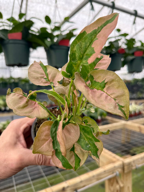 Syngonium can grow in low indirect light but prefer medium to bright indirect light. If grown in low light conditions their growth will slow. Syngonium enjoy a well draining soil rich in organic matter. Allow your Syngonium to dry out slightly between watering.