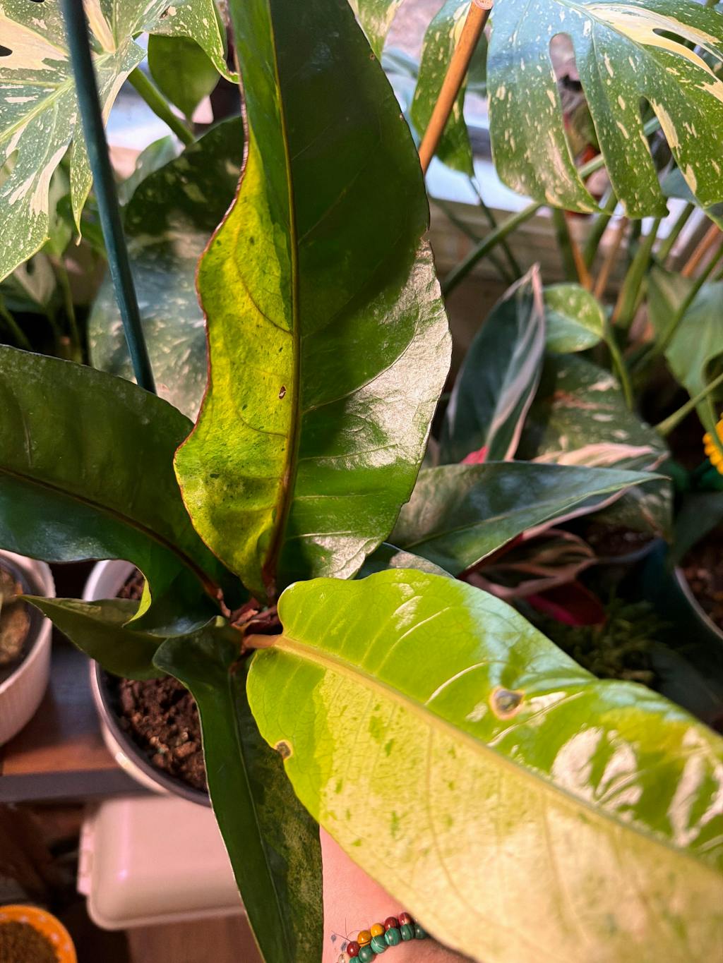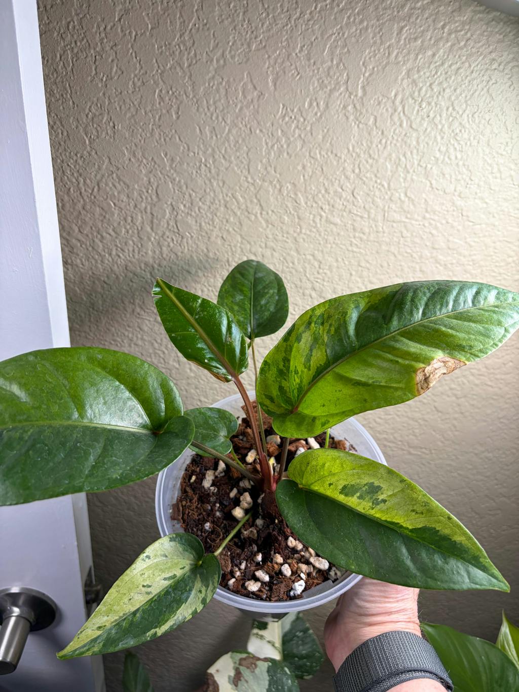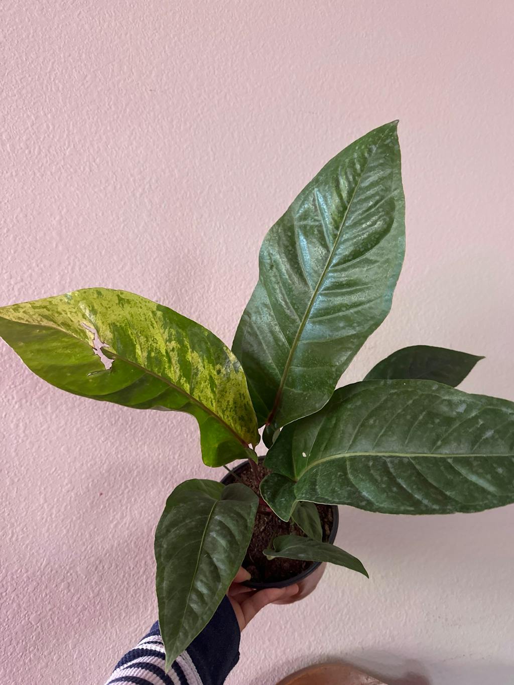 The plant was definitely overwatered when I received it, so I decided to repot it right away. It’s doing quite well. I would recommend this plant for anyone that loves upright Anthuriums.