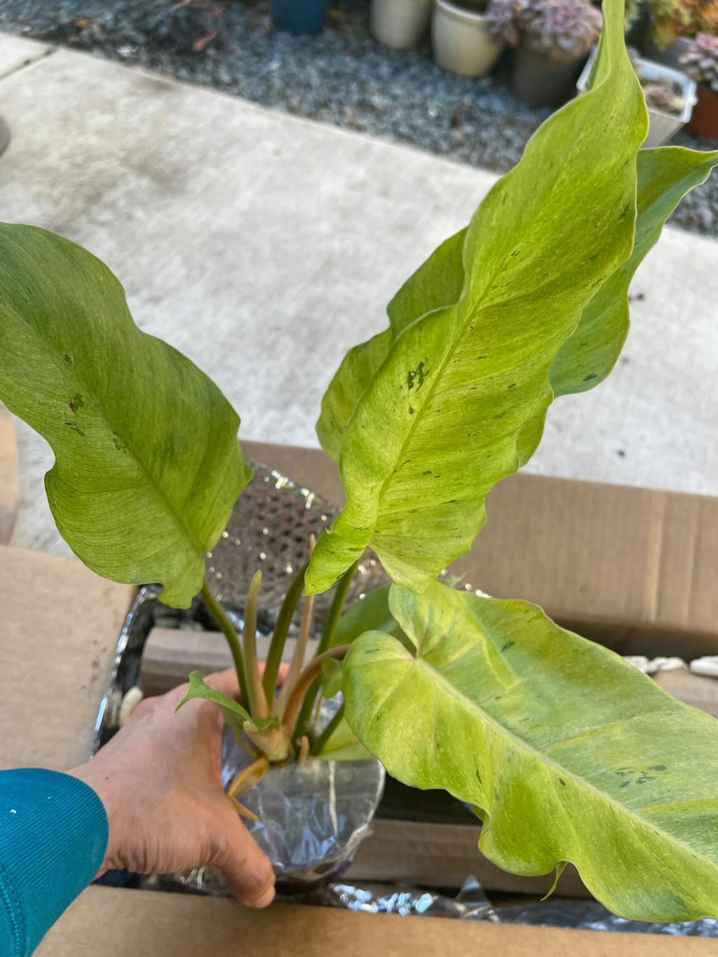 In this order I got the Philodendron Snow Drift. My plants arrived in perfect condition today. The heat pack kept them warm enough to make it to me. The heat pack was nearly cold but still giving off a tiny bit of warmth. Just enough. The leaves on the plants were room temperature about the 68 degrees we keep our home at in the winter. I am very impressed and love how each plant I got looks.
