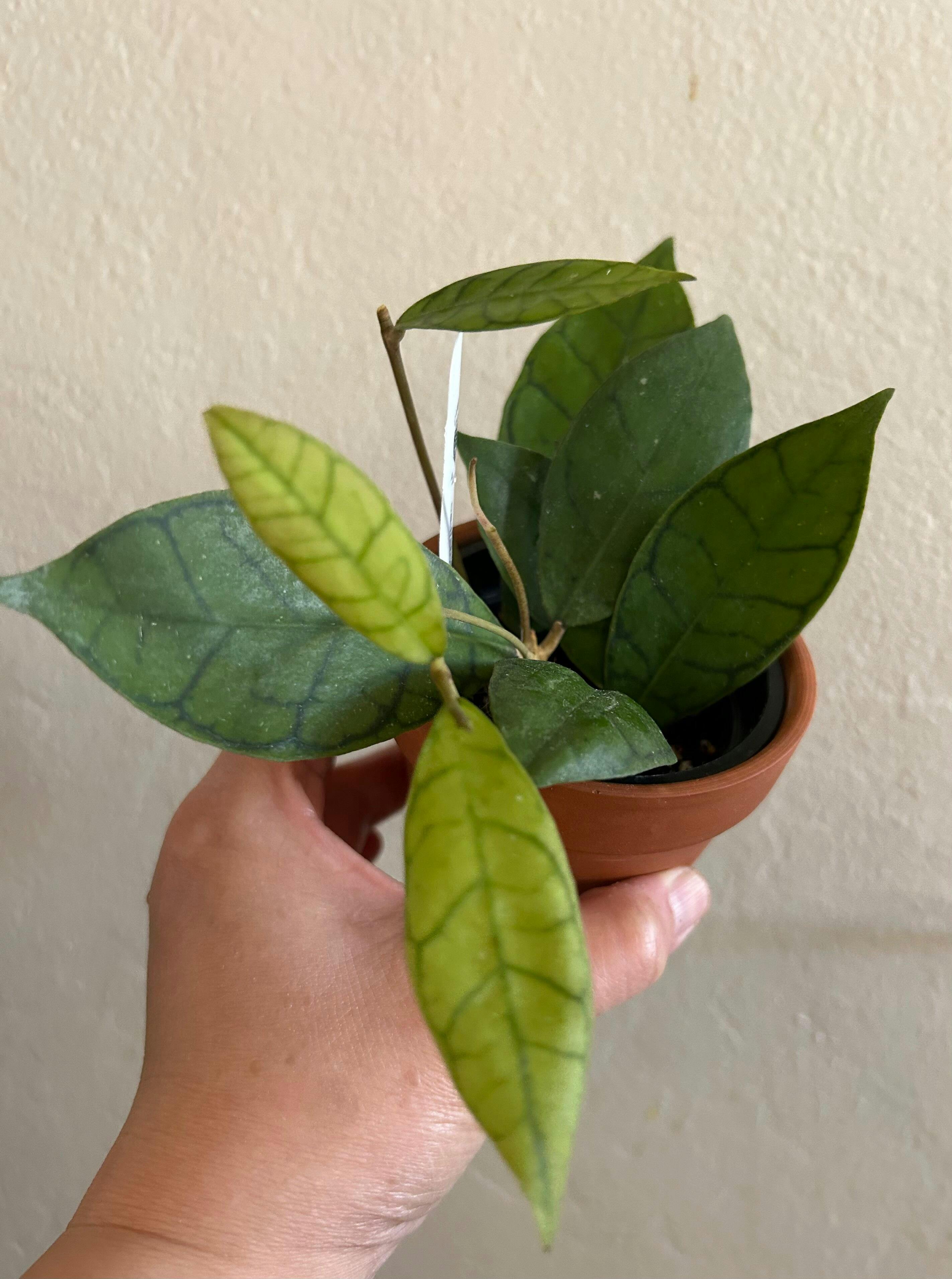 Hoyas have a large range of foliage shapes and textures. They can be found with elongated, deeply veined leaves to thin, narrow leaves and everything in between.