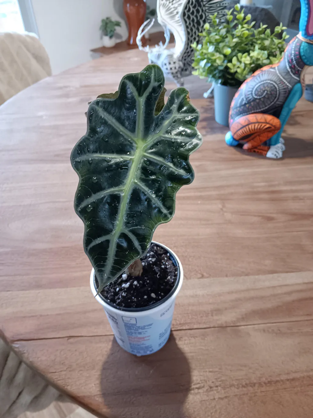 Alocasia Polly is incredibly easy to care for. Alocasia prefer a well draining soil rich in organic matter. Allow your plant to dry out between watering.
