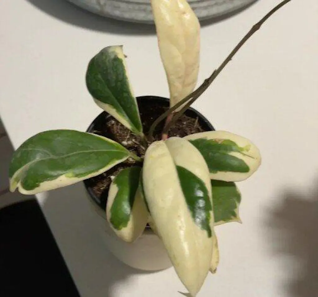 Hoya incrassata variegated has round, elongated leaves. These are the uncommon variegated form of Hoya incrassata which sports outer variegation along the leaf margins.