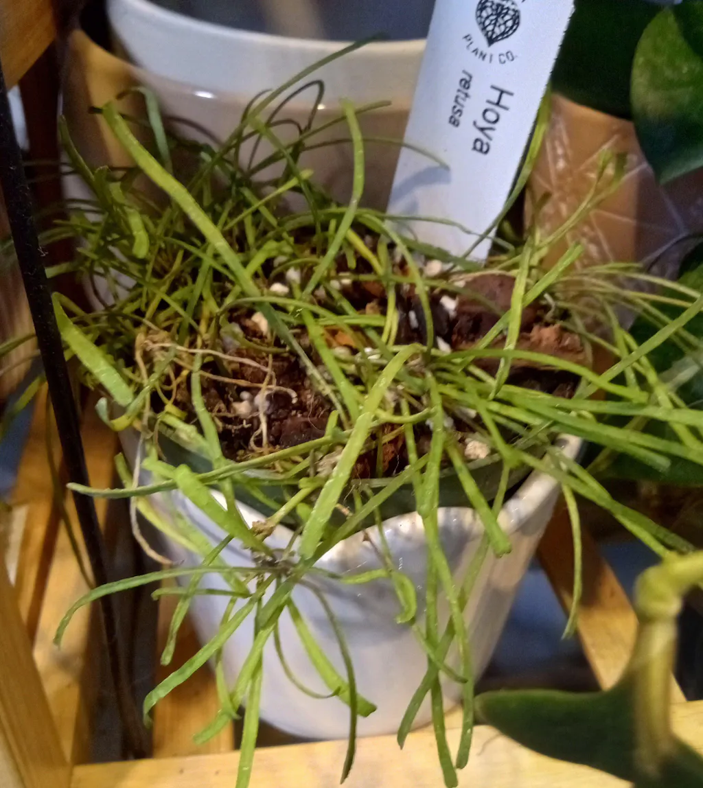 Hoya retusa is a slightly uncommon species with leaves that resemble narrow blades of grass. Likely one of the easiest indoor plants to care for, Hoya retusa needs little attention.