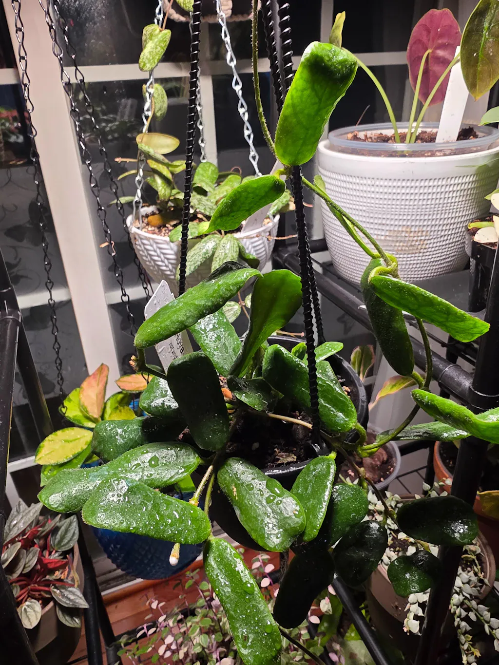 This Hoya species has elongated, slightly round or oval shaped foliage.