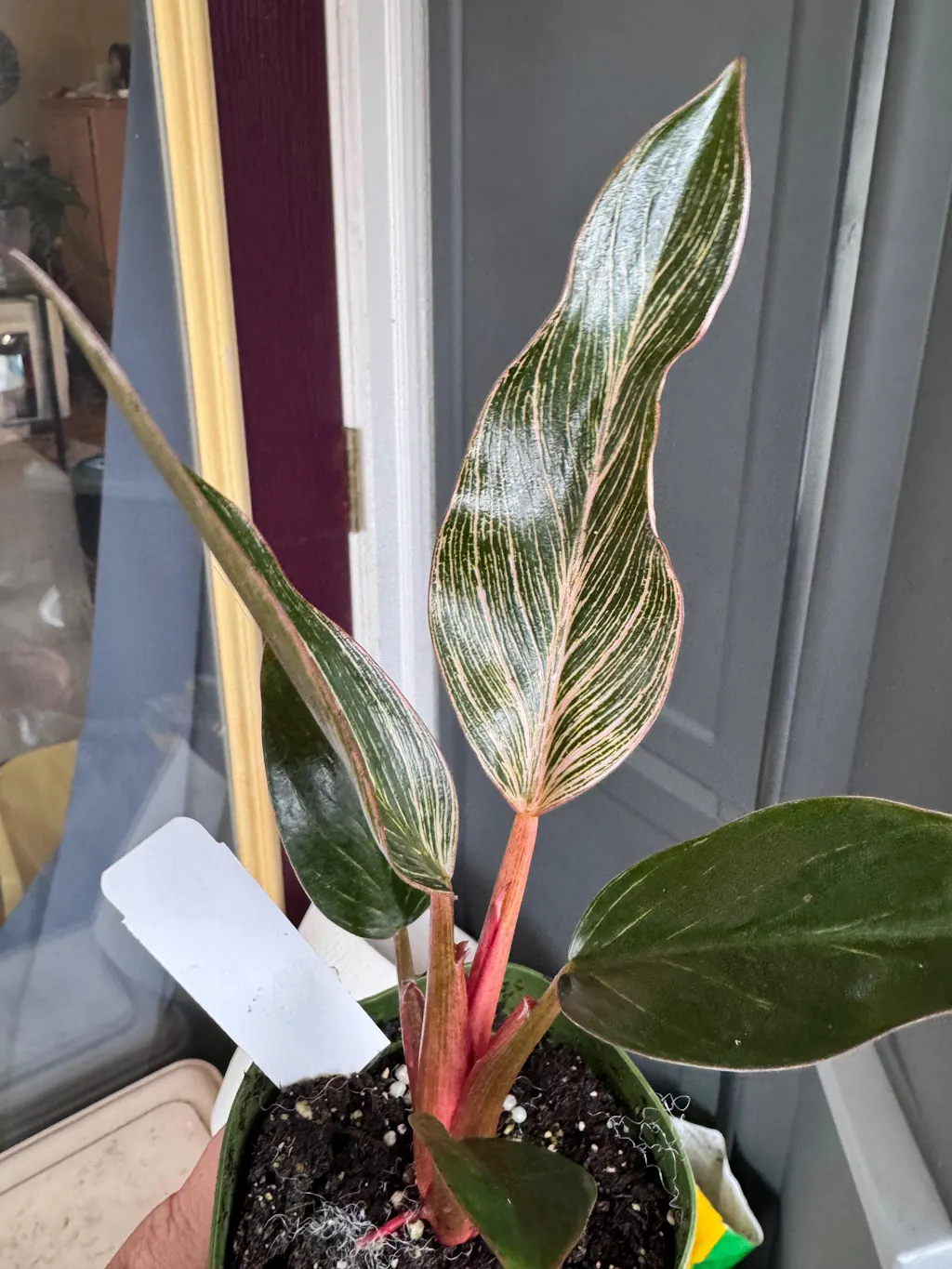 Philodendron ‘Pink Birkin' is a mutation of Philodendron Rojo Congo that was discovered in a tissue culture lab! You may find that your plant puts out leaves with red and white variegation -- this is uncommon, but does happen from time to time!
