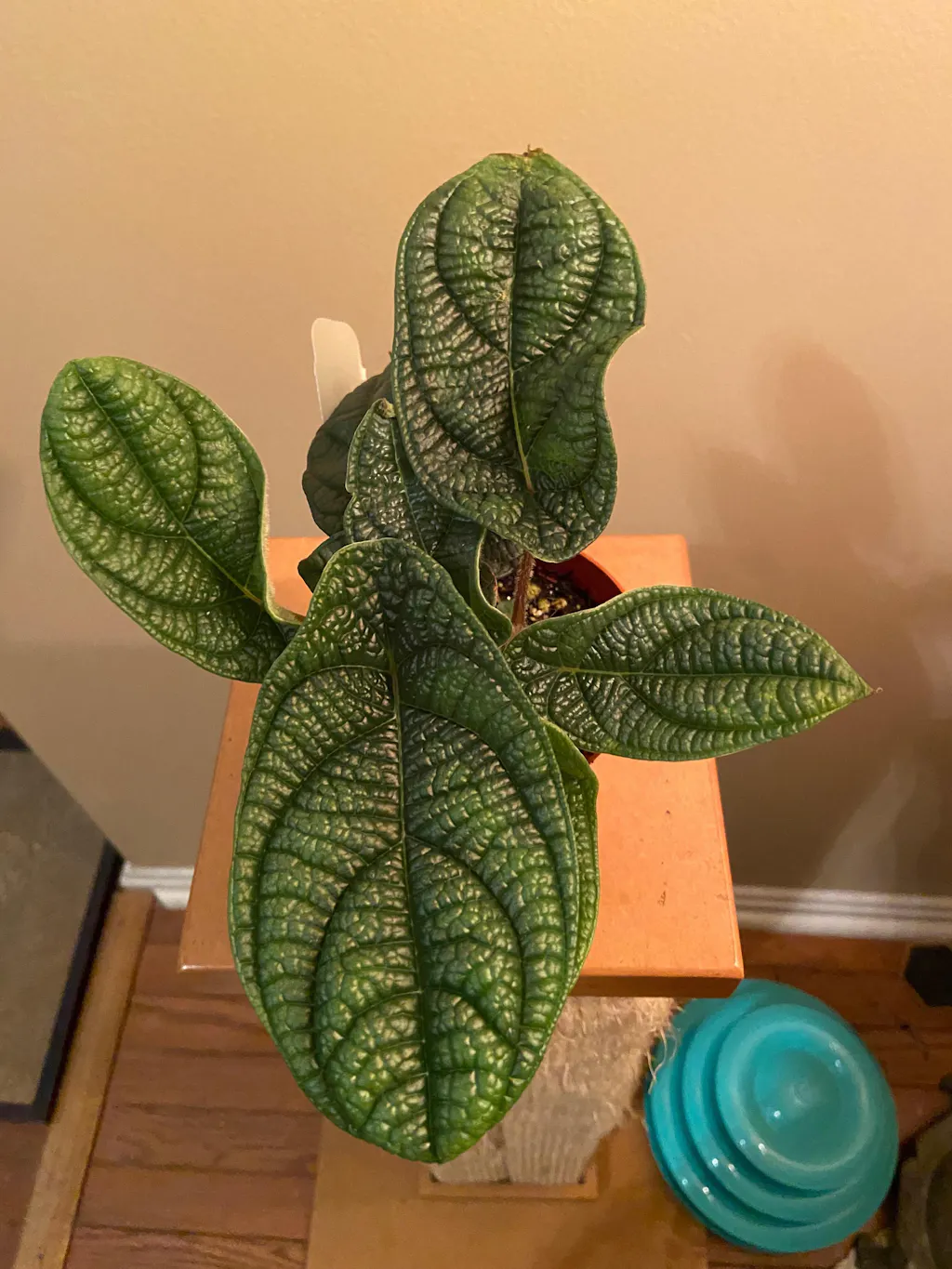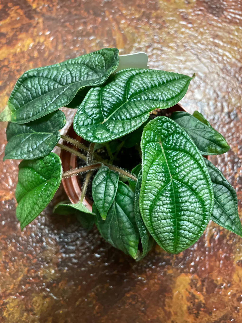 Piper parmatum is an increasingly popular easy care indoor plant. This species is known for its bullate (bumpy texture) leaves that have a silvery blue tint.
