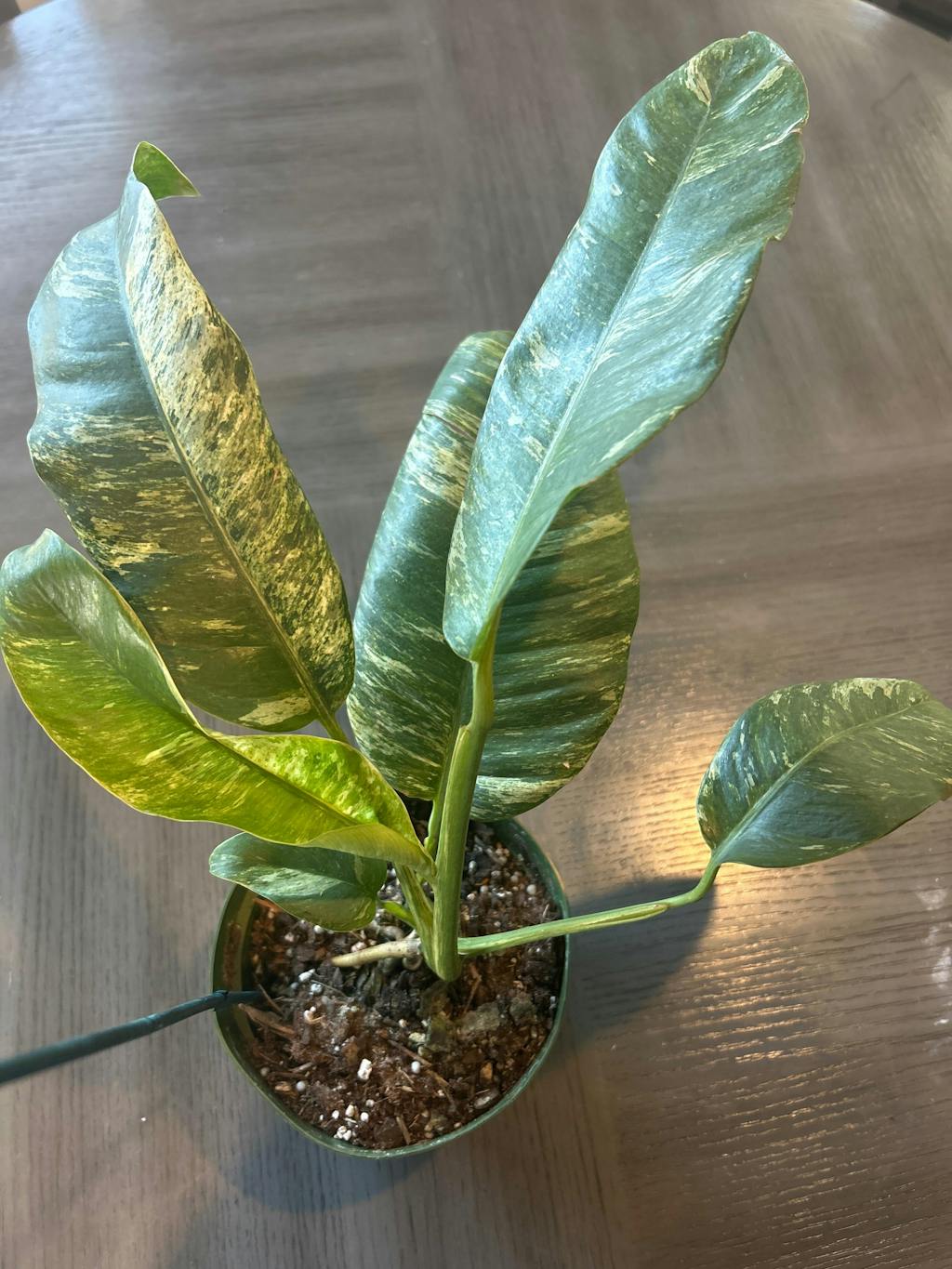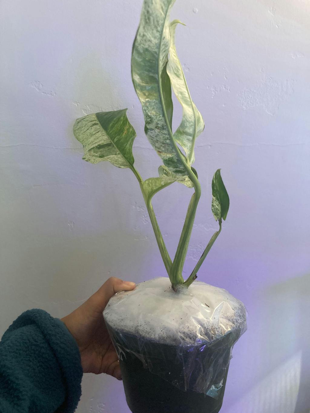 Epipremnum giganteum variegated prefers to climb, so make sure to provide it with a coco pole or other support structure. As it climbs higher, the leaves will grow larger!