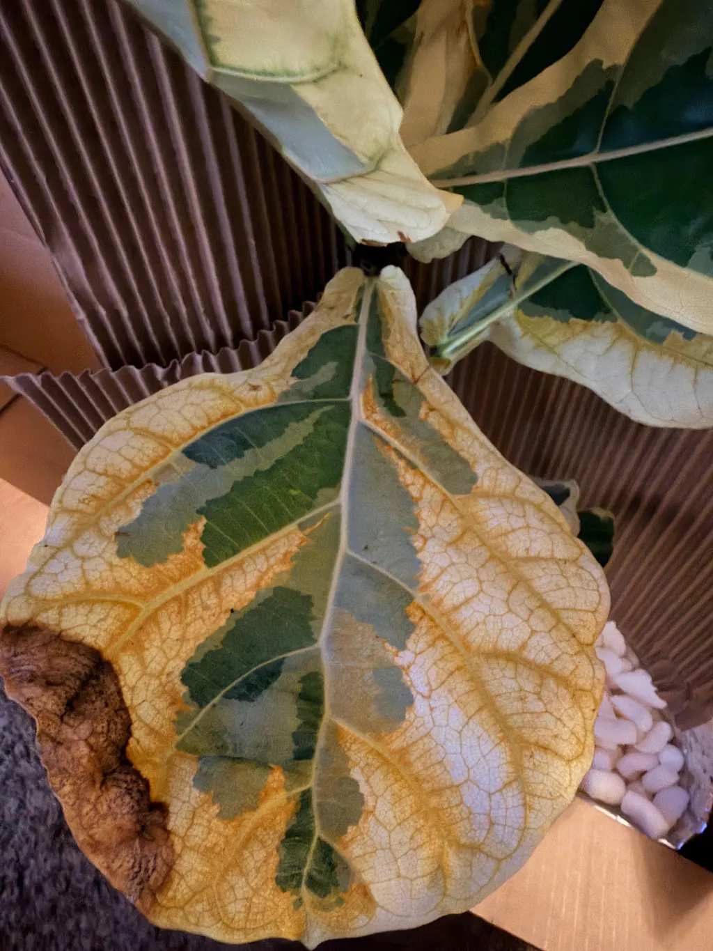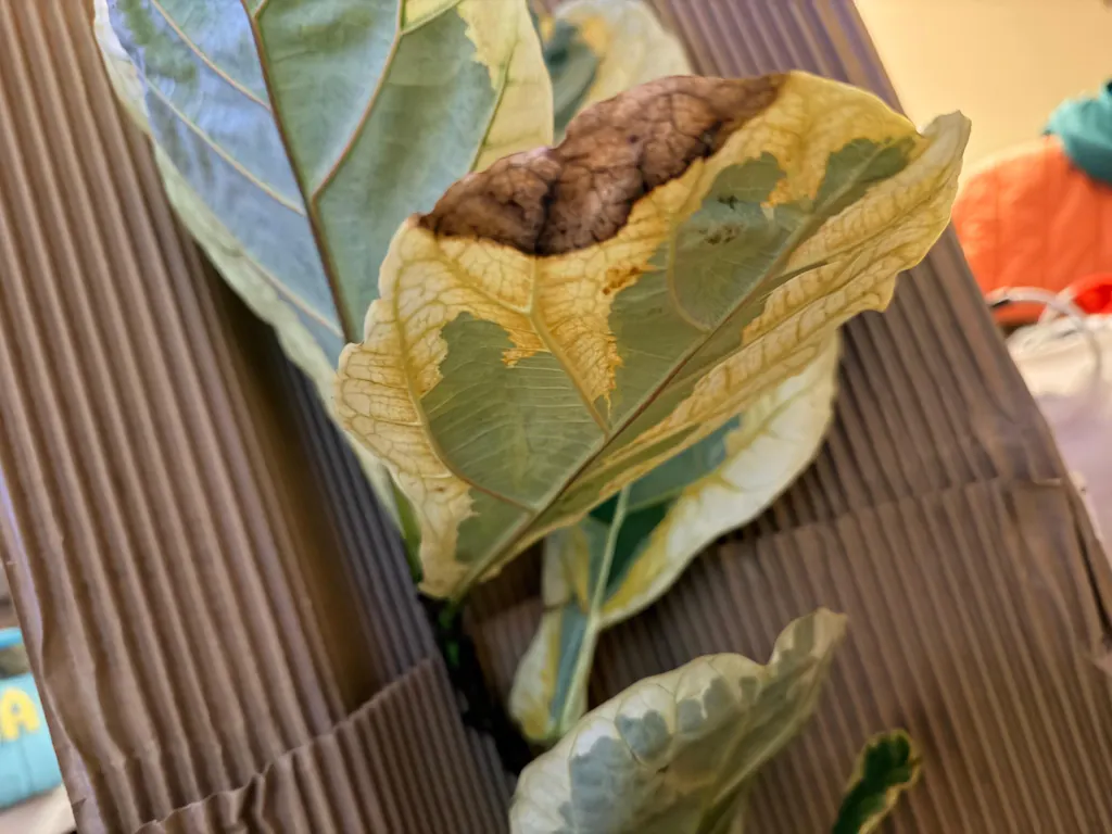 NOTE: Ficus lyrata variegated is known to brown along the margins. NO REFUNDS OR CREDITS FOR BROWNING.
