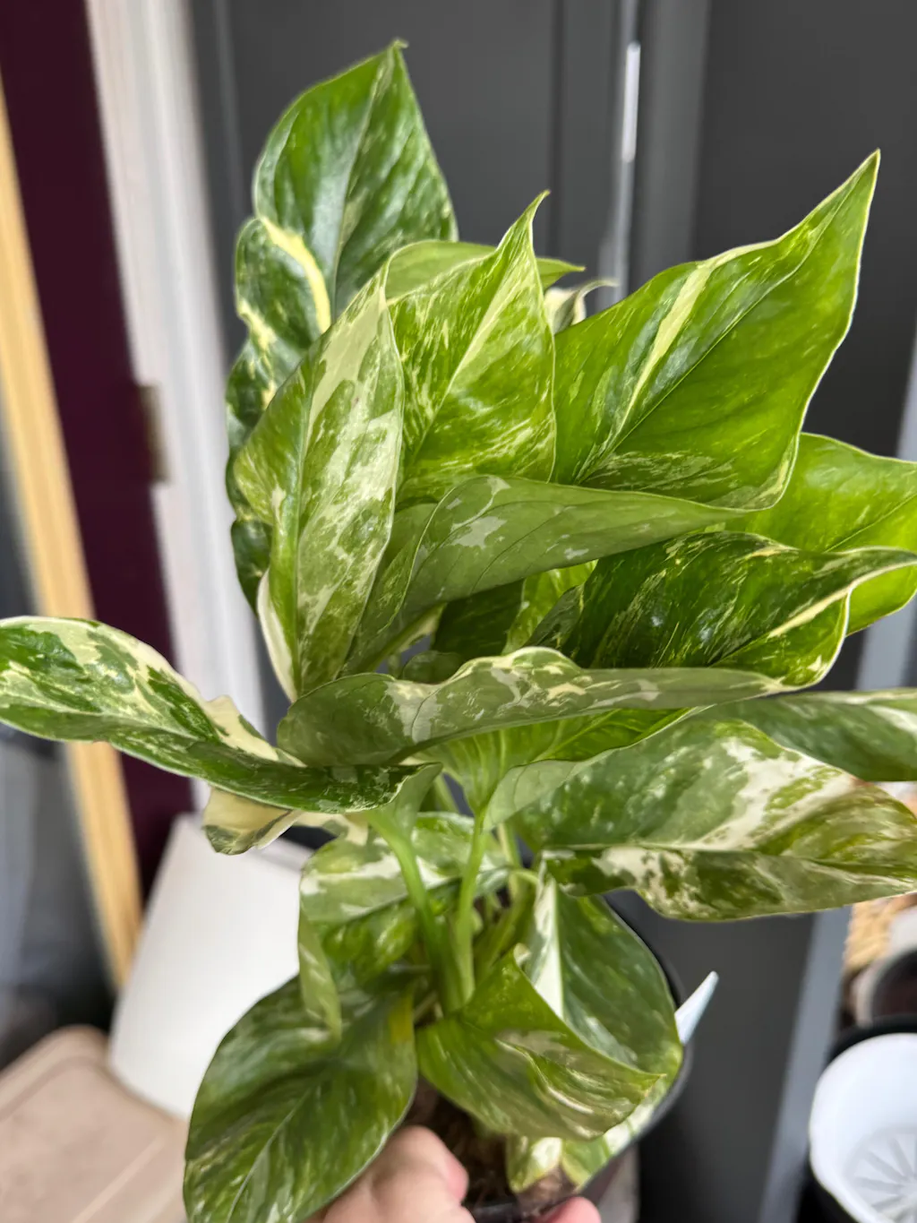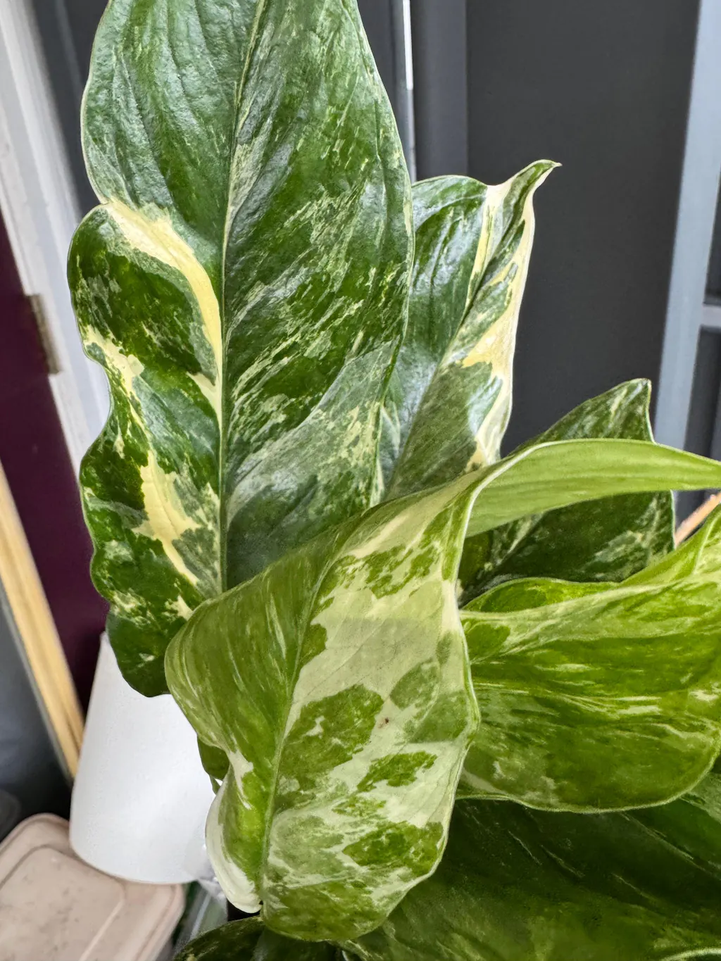 This plant is a stunner!!! So full and lush! I love the dark leaves with the beautiful contrasting white! Can’t wait to see it develop!